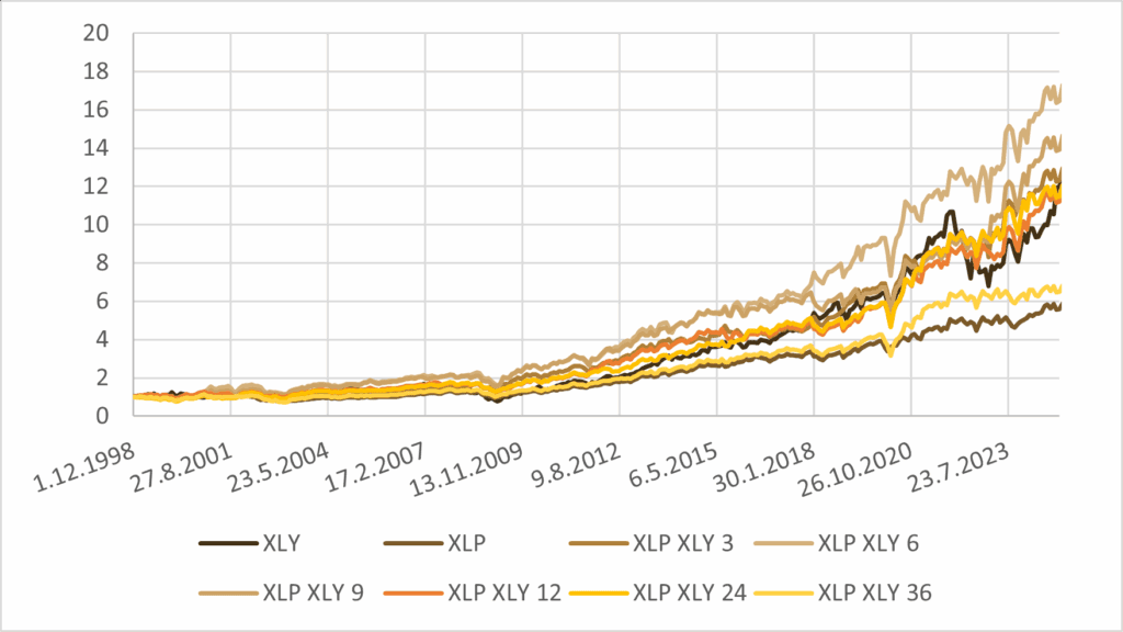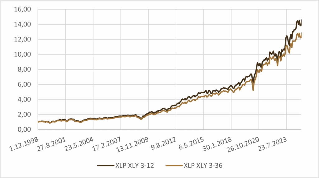 | 12M XLY – XLP switch portfolio | 9.54% | 15.05% | -30.19% | 0.63 | 0.32 |