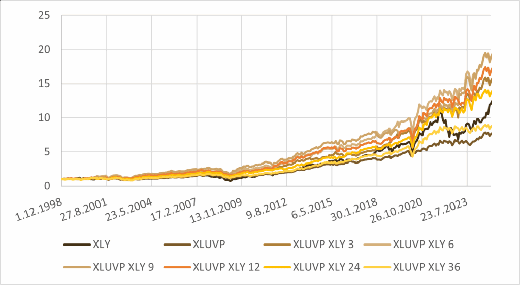 | 12M XLY – XLUVP switch portfolio | 11.21% | 14.27% | -35.14% | 0.79 | 0.32 |