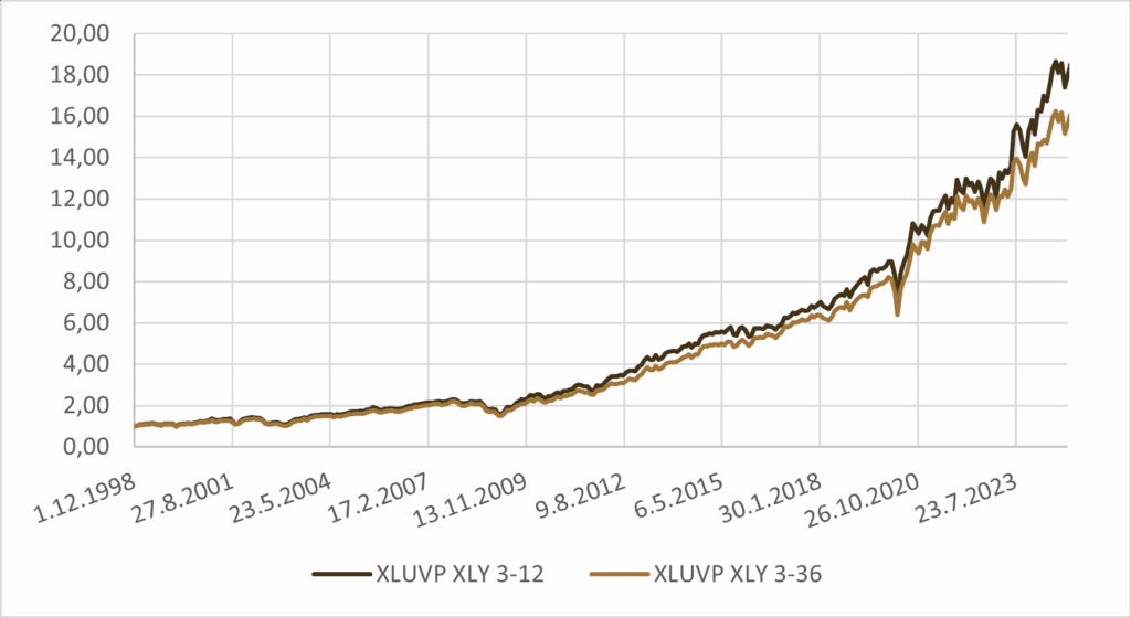 | 3+6+9+12+24+36M XLY – XLUVP switch portfolio | 10.93% | 13.11% | -31.43% | 0.83 | 035 |