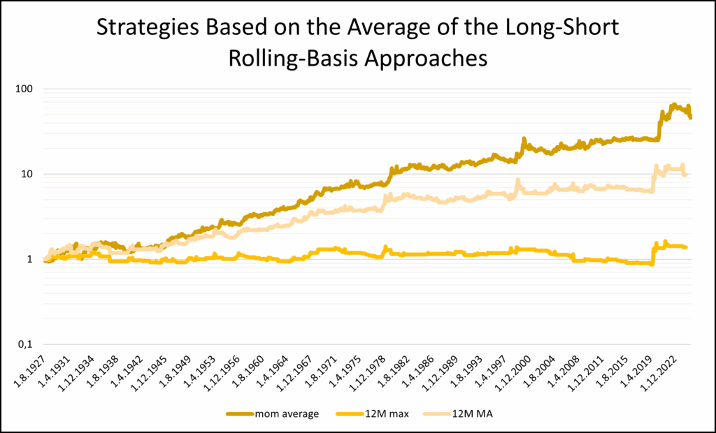 Figure 9: Performance of the strategies based on the average of the long-short rolling-basis approaches, from July 1926 to June 2025.