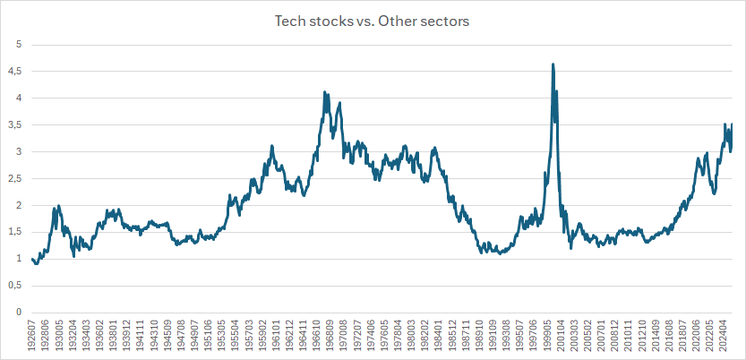Figure 3: Spread in performance between tech stocks and other sectors