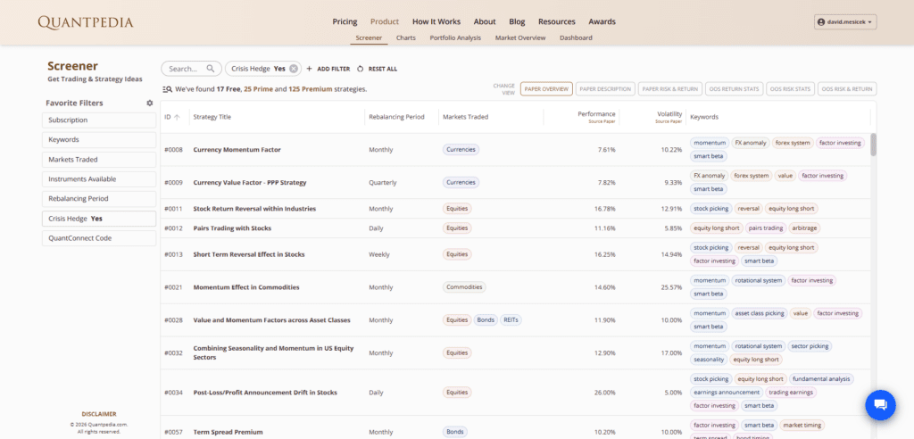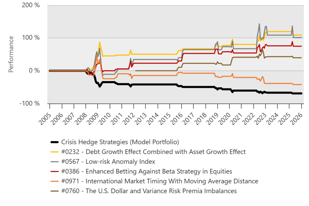 Crisis hedge strategies represent a structurally distinct subset of systematic approaches. While they do not eliminate risk, they materially improve diversification and drawdown characteristics when integrated efficiently. Using Quantpediaโs analytical framework, from screener identification through regime testing and portfolio optimization, investors can construct crisis aware allocations that enhance long term risk adjusted performance while maintaining structural robustness across market cycles.