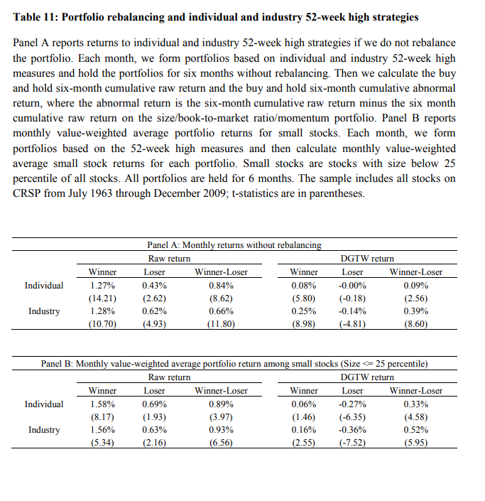 This effect could be enhanced with a strategy using a narrower investment universe and buying stocks in industries in which stock prices are close to 52-week highs. The strategy is related to the momentum effect, but research shows it is independent of it. The strategy should not be implemented in January as it has negative results in this month (like momentum). Most of the gains for the long-short version are from long positions, which makes the “52-week high effect” easier to implement in real-world trading.