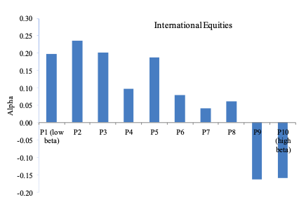 Abstract: We present a model with leverage and margin constraints that vary across investors and time. We find evidence consistent with each of the model’s five central predictions: (1) Since constrained investors bid up high-beta assets, high beta is associated with low alpha, as we find empirically for U.S. equities, 20 international equity markets, Treasury bonds, corporate bonds, and futures; (2) A betting-against-beta (BAB) factor, which is long leveraged low- beta assets and short high-beta assets, produces significant positive risk-adjusted returns; (3) When funding constraints tighten, the return of the BAB factor is low; (4) Increased funding liquidity risk compresses betas toward one; (5) More constrained investors hold riskier assets.